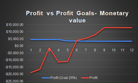 | Profit percent goal | 25% | 25% | 25% | 25% | 25% | 25% | 25% | 25% | 25% | 25% | 25% | 25% | 4.18% |